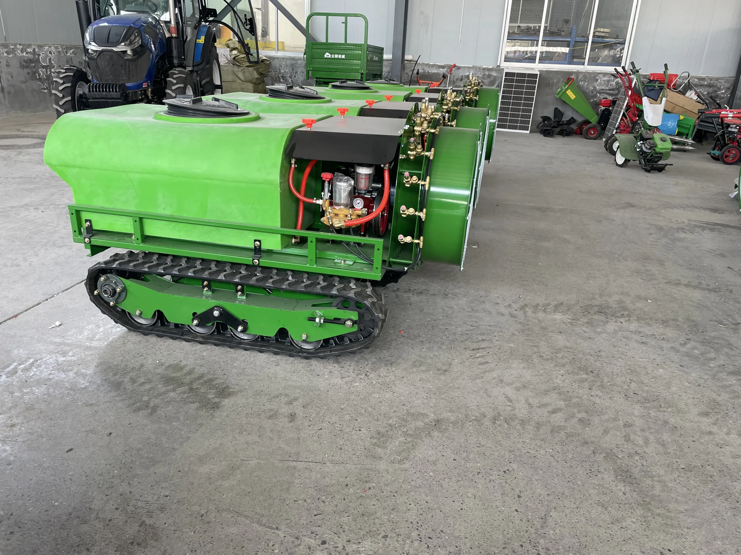 The tracked sprayer is a high-performance agricultural sprayer machine designed for large-scale plant protection, pest control, and weed control in orchards, farms, and complex terrain. It is equipped with a 500L medicine tank and delivers a powerful spray flow rate of 52–60 L/min with a wide spray range of 10–15 meters, ensuring efficient and high-coverage spraying operations.