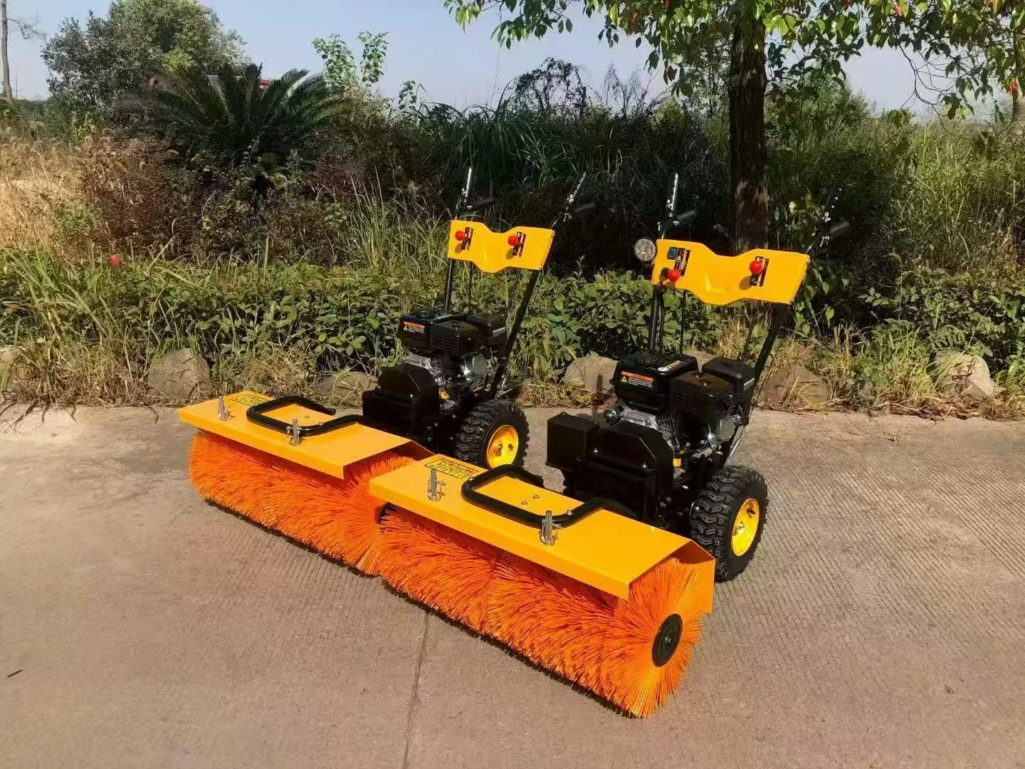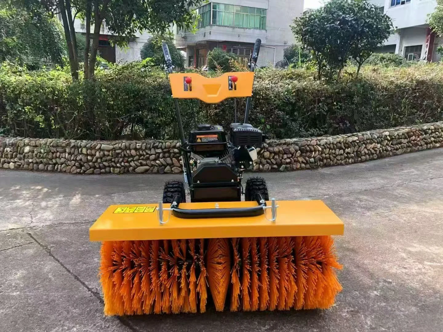 With an 80cm working width and durable nylon brush, it effectively clears snow, slush, and debris from driveways, sidewalks, parking lots, and public areas. The snow tyres provide excellent traction, ensuring stable operation on icy and slippery surfaces.Similarly, it can also be used for dust cleaning operations.